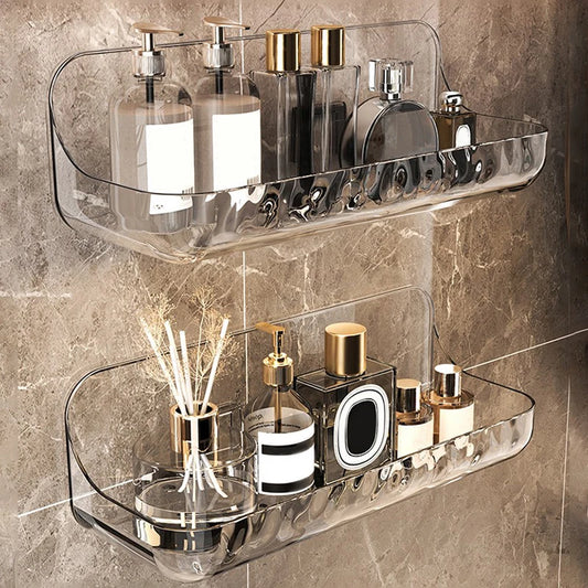 Estante de almacenamiento transparente acrílico para baño, bandeja de almacenamiento de cosméticos sin perforaciones montada en la pared, organizador de maquillaje, estante de cocina para baño